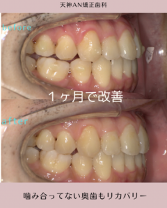 約1ヶ月ほどで奥歯がしっかり噛む状態に改善しました。