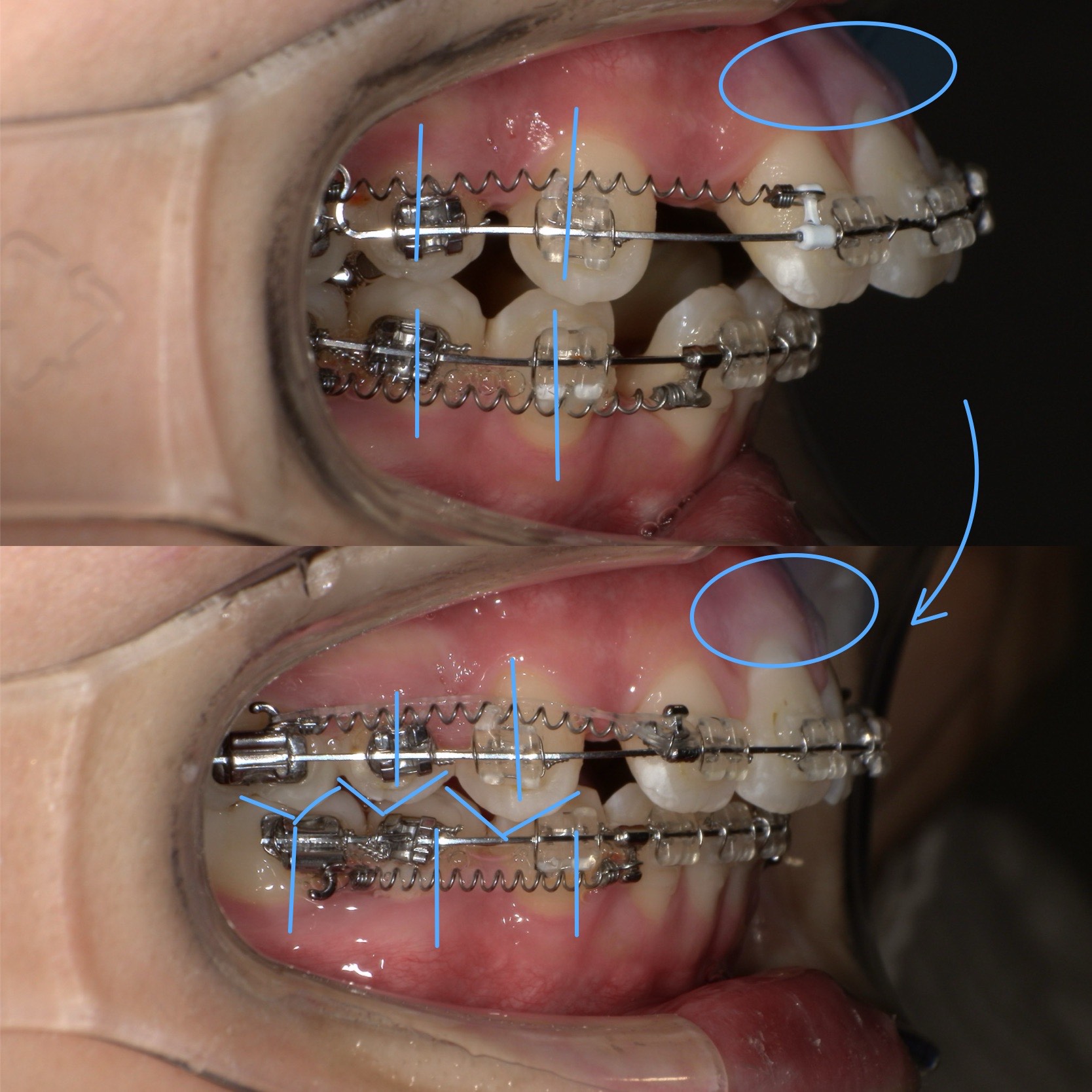 - 噛み合わせのズレが改善方向へ→1本対1本で嚙んでいたのが1本対2本のかみ合わせへ