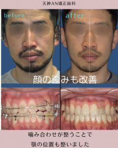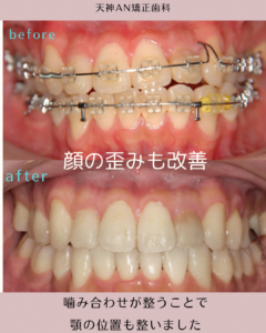 ただ、今回のようにかみ合わせがまっすぐになると顎のゆがみも取れてくることもあります。